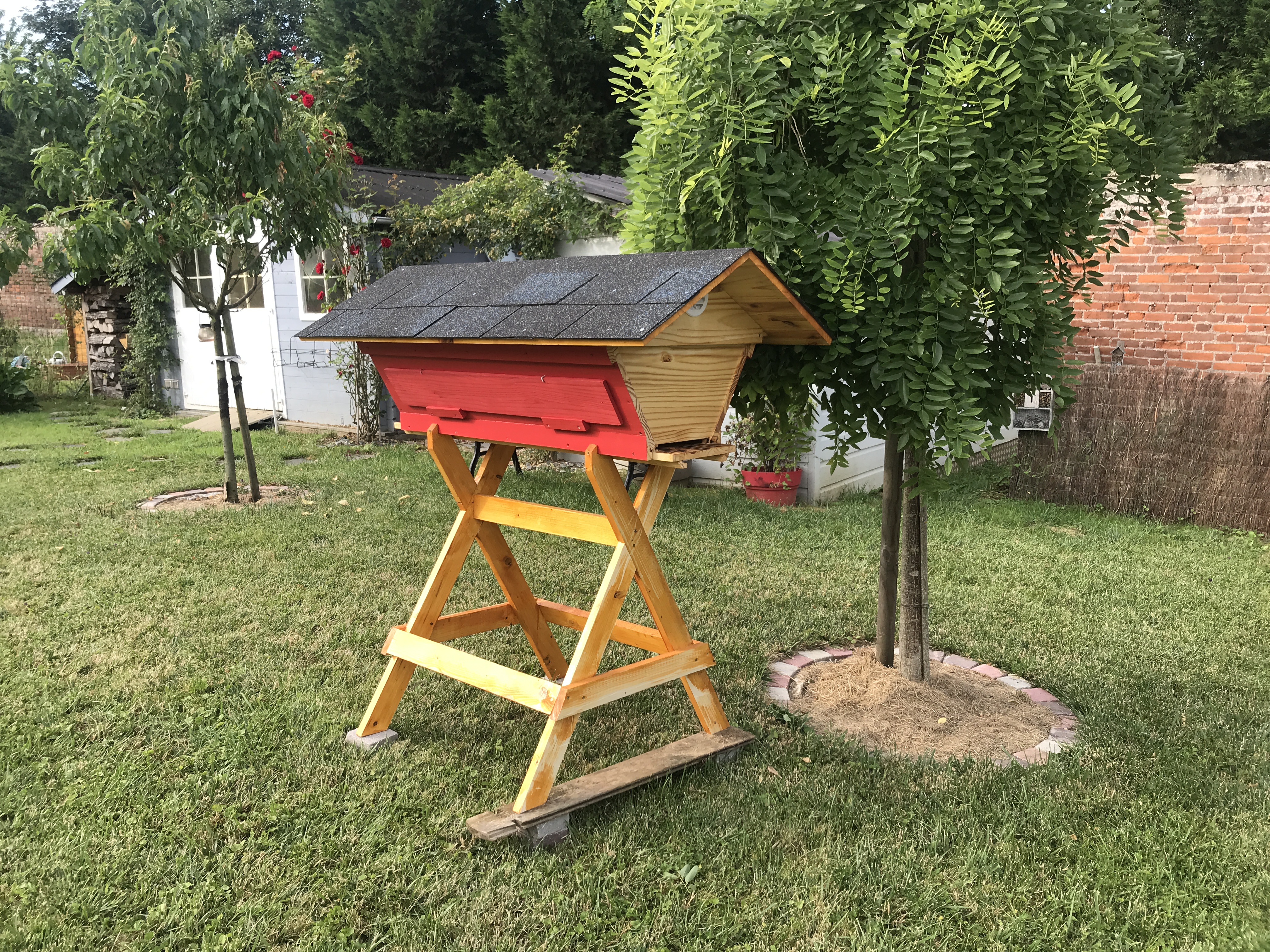 Le confinement nous bloquant à la maison, je me suis mis à construire une ruche Kényane, sympa le travail du bois. Une fois la ruche construite, je me suis dit qu’il fallait la peupler.
